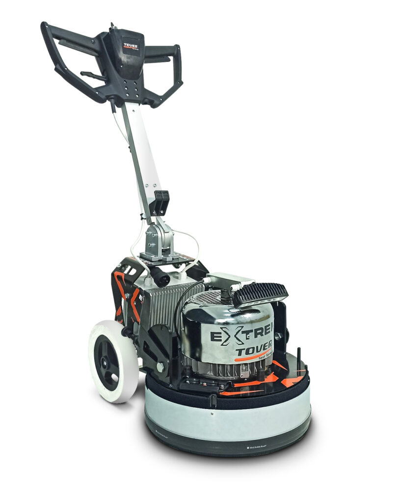 Extreme può lavorare a ruote alzate come monospazzola, o con ruote a terra nelle fasi di levigatura più estreme, riducendo al minimo i residui grazie ad un efficace sistema di aspirazione.